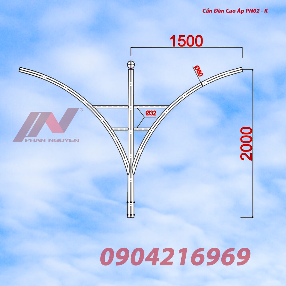 Cần đèn cao áp kép PN02-K thiết kế tinh tế phù hợp với nhiều cột đèn chiếu sáng